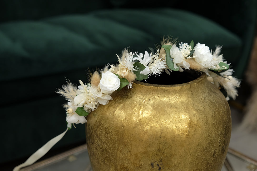 Bitte überlege dir im 1. Schritt genau, welchen Farben und welcher Stil zu dir / euch passen. Soll der Blumenschmuck eher zart und feminin sein? Oder natürlich und wild verspielt? Sammle möglichst viele Bilder und Moods, die deine Wünsche gut beschreiben.